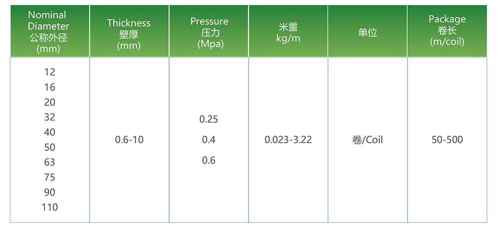 公称外径:12mm-110mm